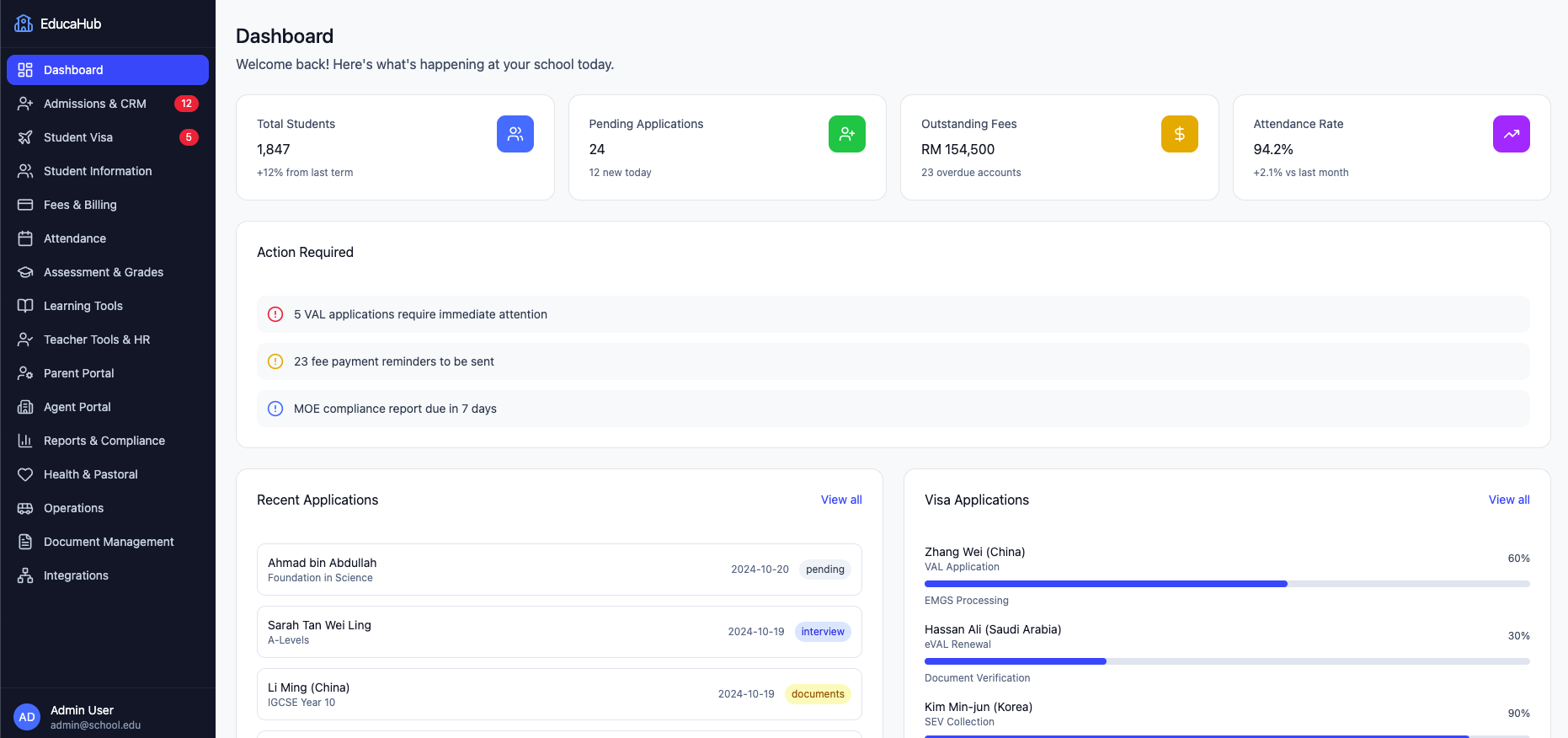 Educational platform with student & teachers management,parents portal, fees & billing, attendance, grades and certification system.
