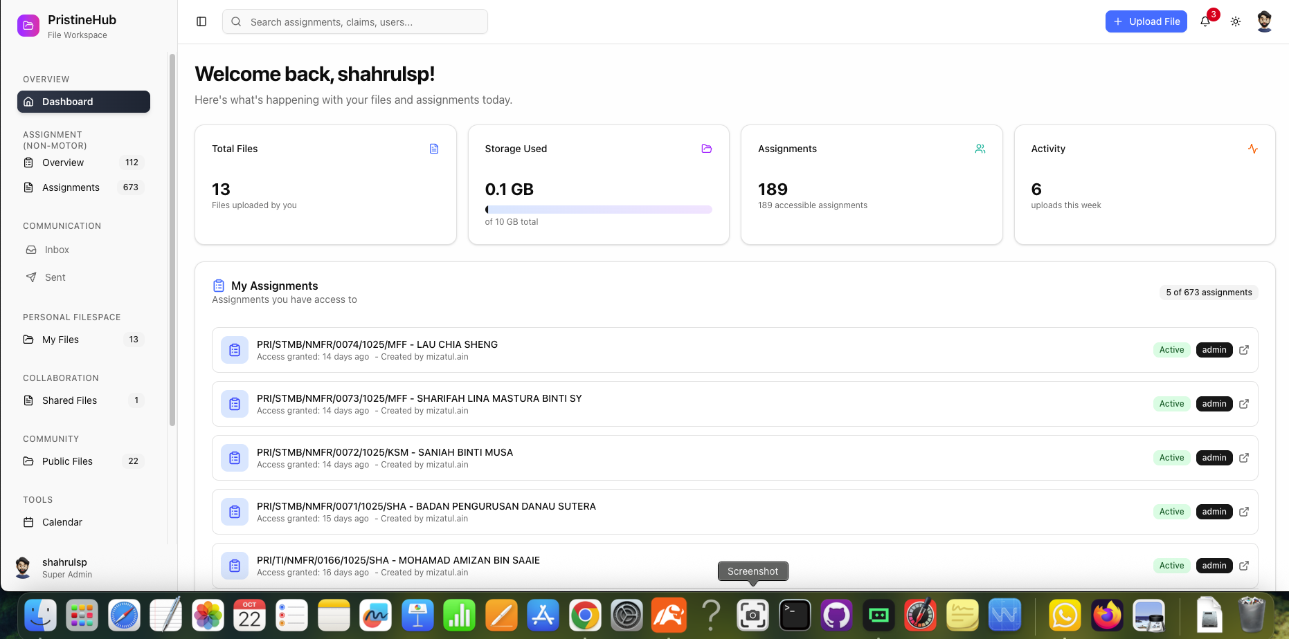 Comprehensive insurance adjusters management platform with assignments creation & tracking, files access control,integration with zohomail api.